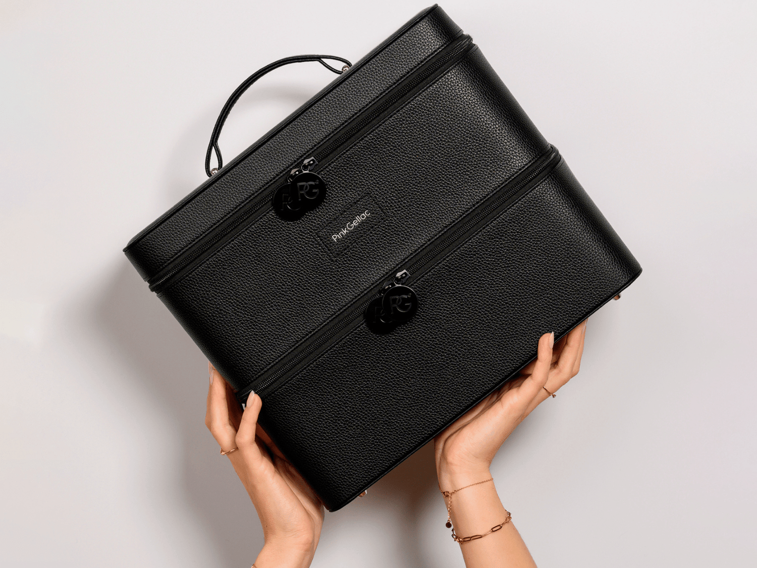 Die Premium-Koffer ist die perfekte Möglichkeit, ihre Pink Gellac-Kollektion stilvoll aufzubewahren – und überallhin mitzunehmen. Diese robuste, reisefreundliche Tasche bietet Platz für bis zu 40 Gel-Nagellackfläschchen im unteren Fach, während das obere Fach Raum für all ihre Essentials bietet: Lampe, Base, Top Coat, Cleaner, Nail Art Tools und vieles mehr. Ob sie gerade ihre Sammlung aufbaut oder als Nagelstylistin unterwegs ist – diese Case vereint Schönheit und Ordnung in einem.