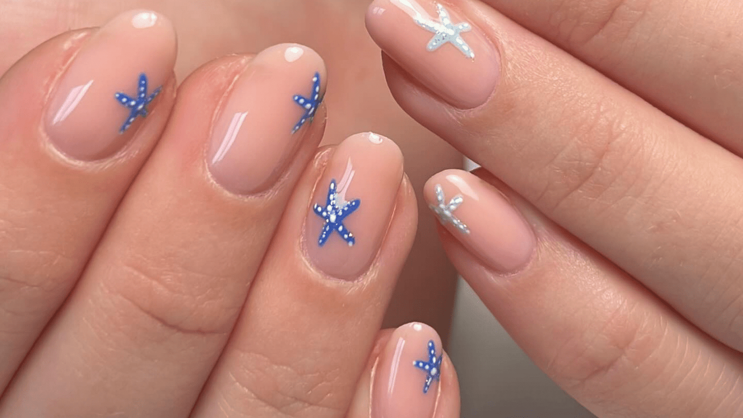 These sea star accents instantly bring a beachy feel to your manicure. Painted with 301 Azure Blue and 323 Gentle Jade, they pop beautifully against the soft nude base – like tiny starfish washed up on a sandy shore. A light-hearted design that’s perfect for holiday mode, whether you're heading to the coast or just want your nails to take you there.
