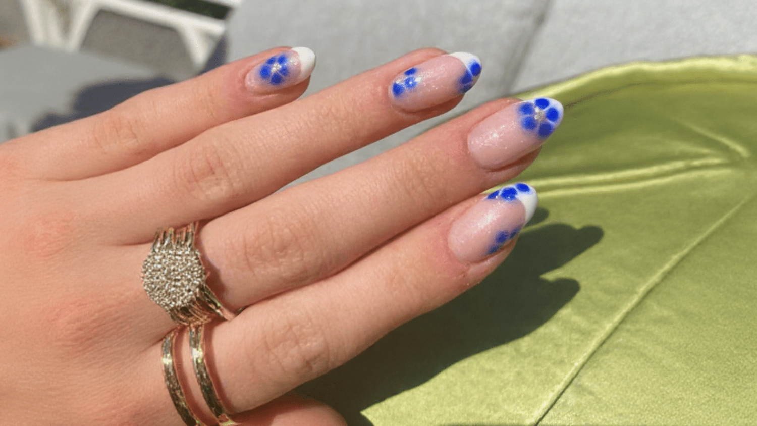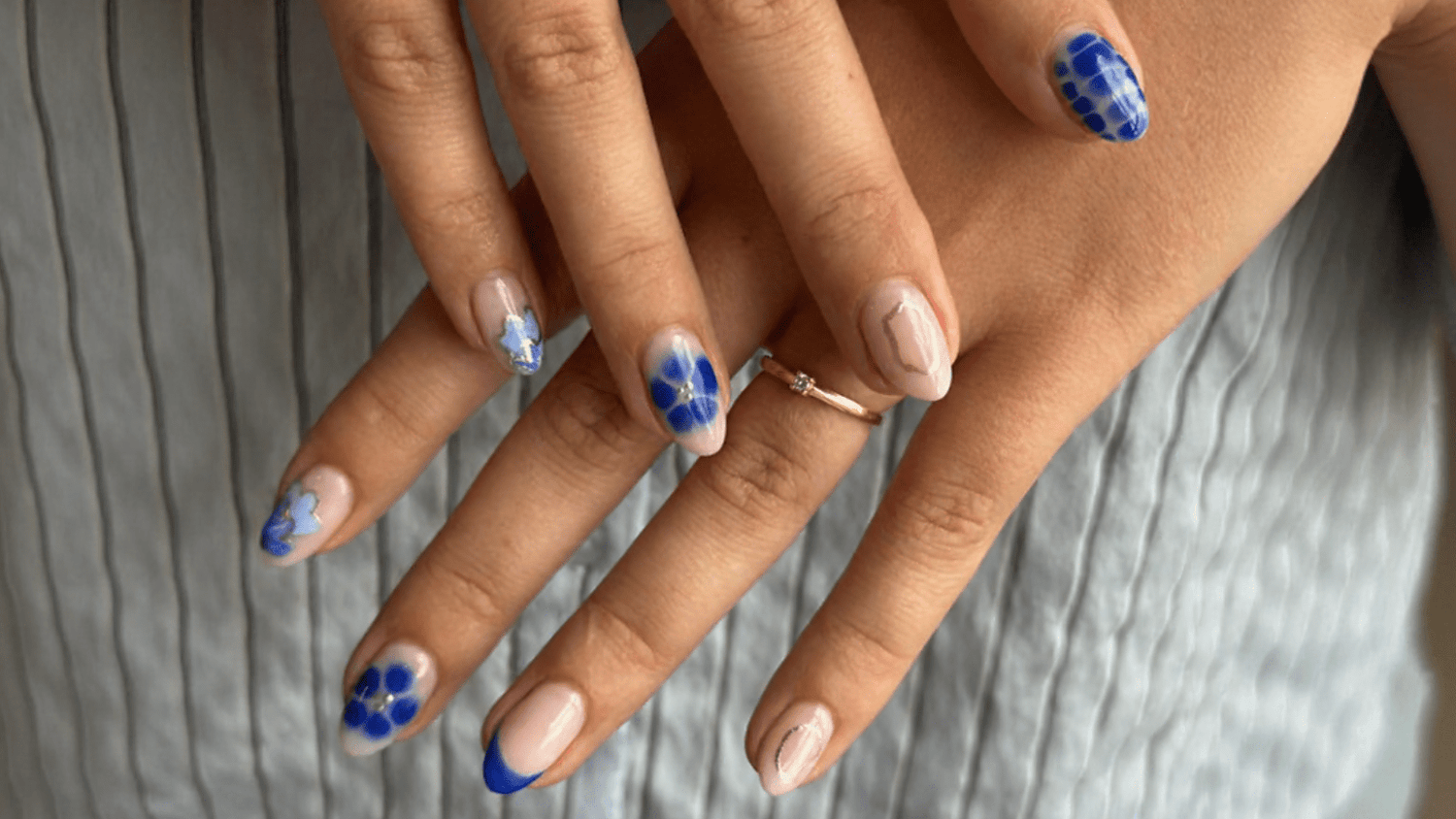 Not sure which blue nail look to go for? Just mix them. This playful combo brings together soft florals, clean outlines and a classic French tip – all tied together with the blue shade. The mix-and-match nail trend is popping up more and more across social media. Perfect for when you can’t decide on just one design – or simply don’t want to.