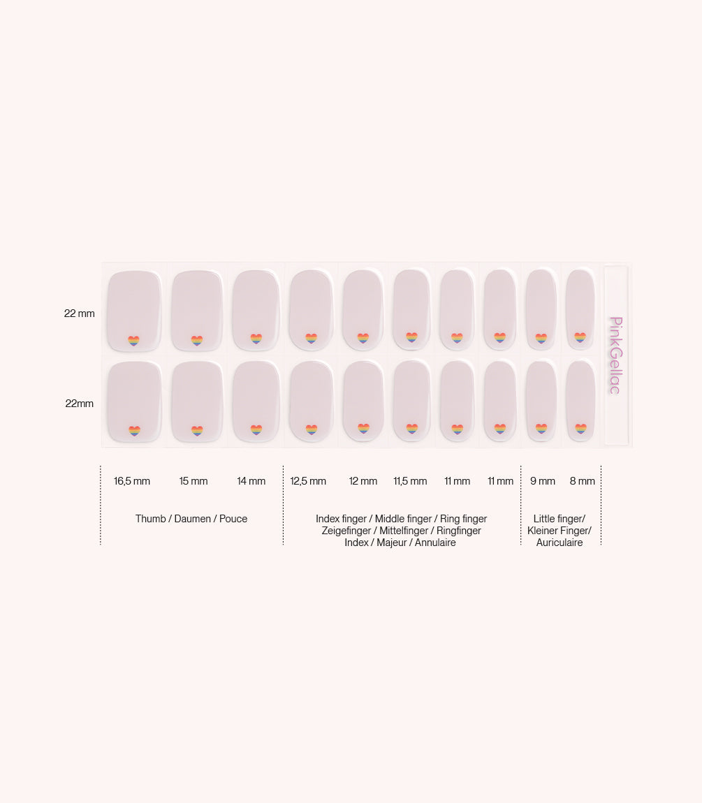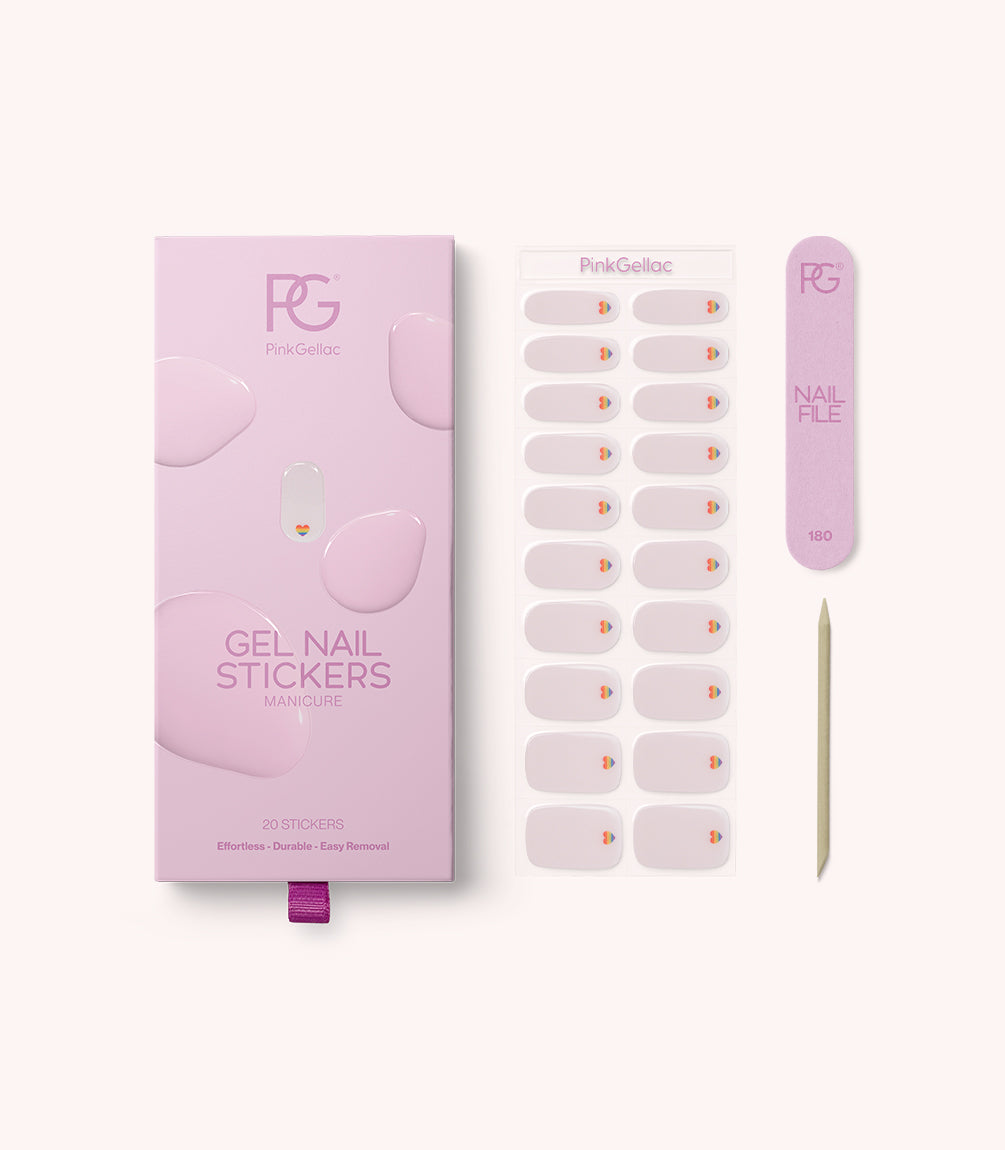 Célébrez l’amour dans toutes ses couleurs avec Chromatic Love, notre édition limitée de stickers Gel Nail spécialement conçue pour les fiertés 2025. Ces stickers présentent une base chromée douce qui scintille subtilement à chaque mouvement, surmontée d’un petit cœur arc-en-ciel, symbole élégant de fierté, d’amour et d’inclusion.
